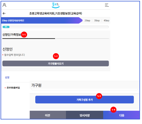 5-2. '가구원 불러오기'를 눌러서 가족구성원을 다시 불러올 수 있습니다.