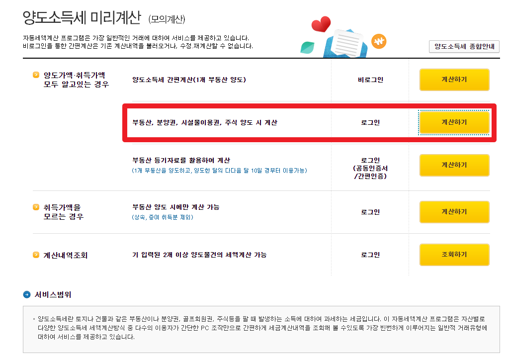 - 계산하기 버튼 클릭: 입력한 정보로 주식 양도세를 계산하기 위해 "계산하기" 버튼을 클릭합니다.