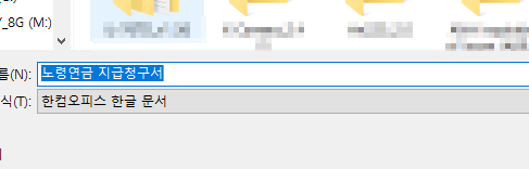 그러면 아래처럼 "노령연금 지급청구서"파일이 오게 됩니다. "저장"을 누릅니다.