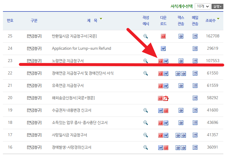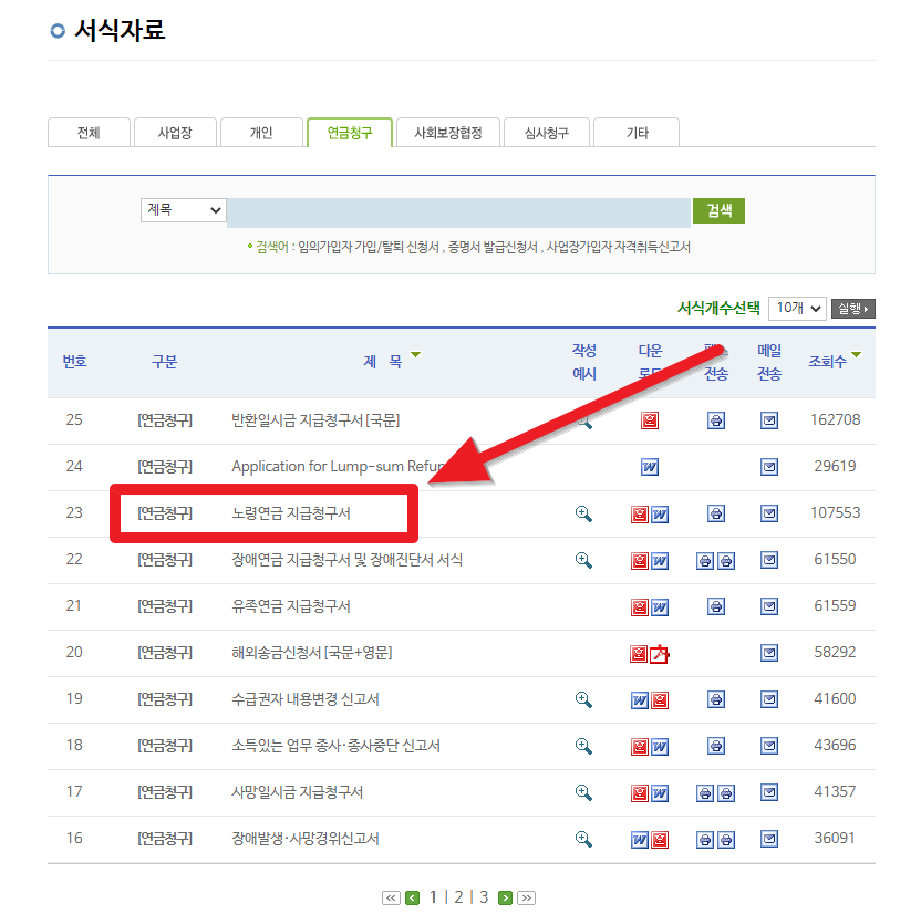 이상은 국민연금공단에서 서식쪽으로서 가서 "노령연금지급청구서" 다운 받는 법이었습니다.