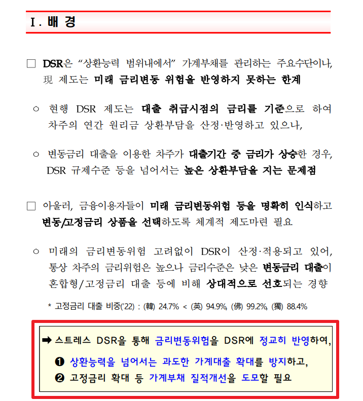 스트레스 DSR 이란 간단하게 '변동금리 주택담보대출에서 DSR 산정시 대출금리에 가산금리를 더해서 DSR을 측정한다'는 의미입니다.