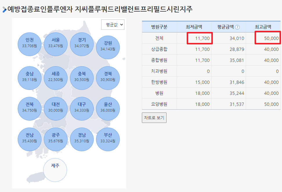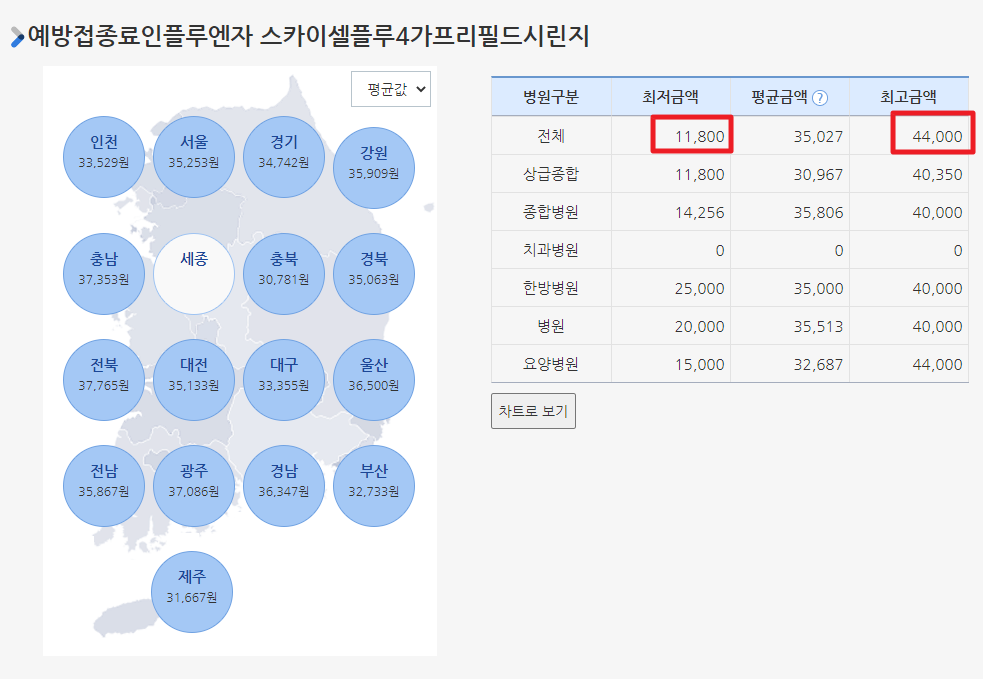 ㅇ 비알플루텍III테트라백신프리필드시린지(35,000~40,000) 이게 가장 가격폭이 적군요.