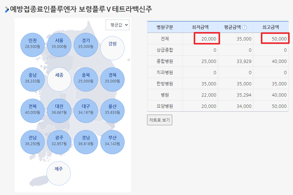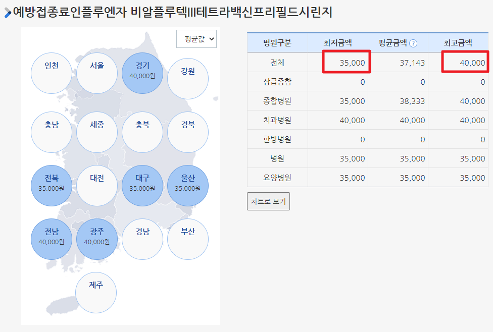 ㅇ 비알플루텍III테트라백신프리필드시린지(35,000~40,000) 이게 가장 가격폭이 적군요.