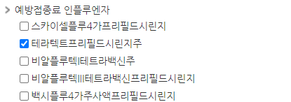 그러면 바로 다음과 같이 "예방접종료 인플루엔자"를 확인할 수 있는데요. 스크롤을 조금 내려보겠습니다.