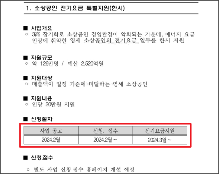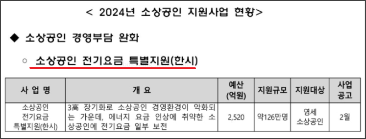 - 지원 내용: 업체당 20만원의 전기료 지원