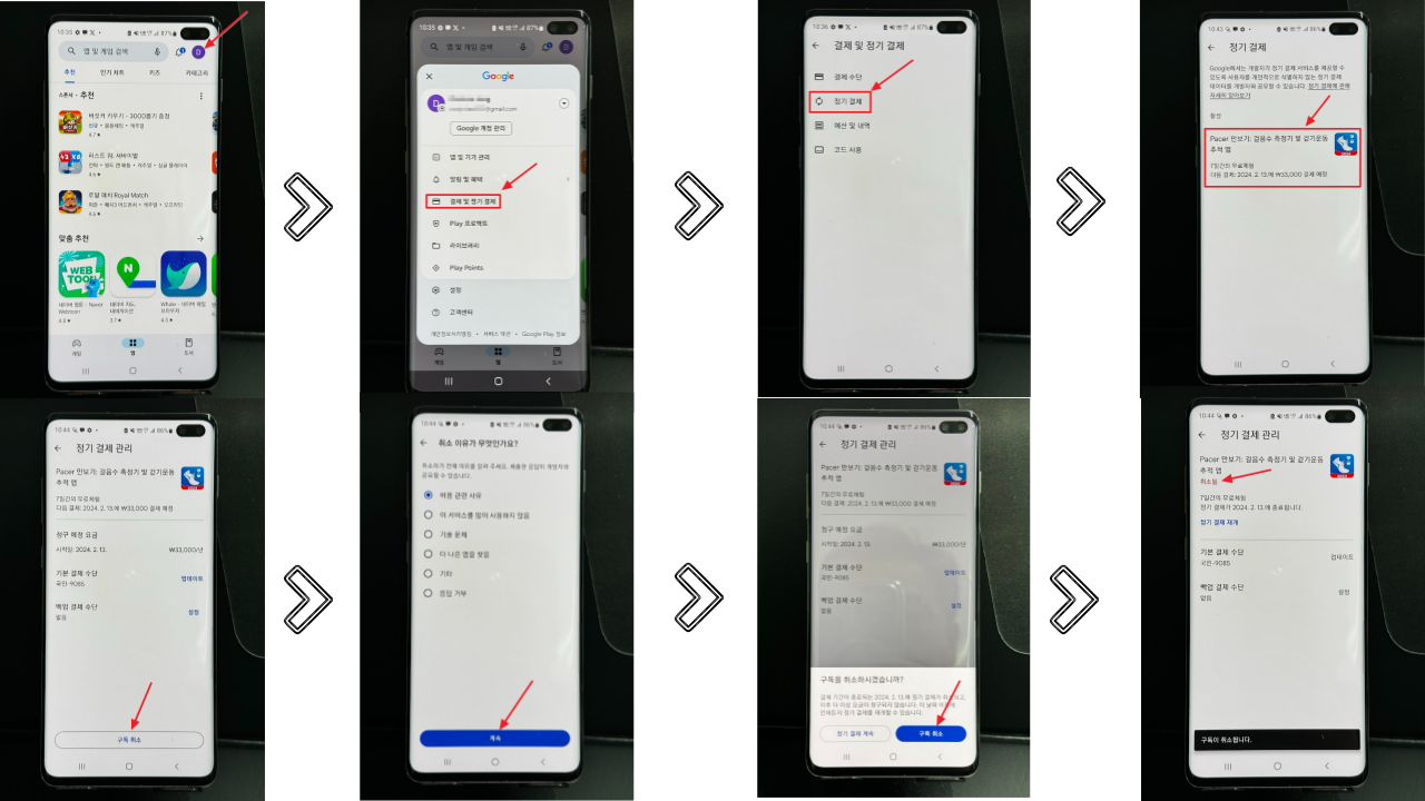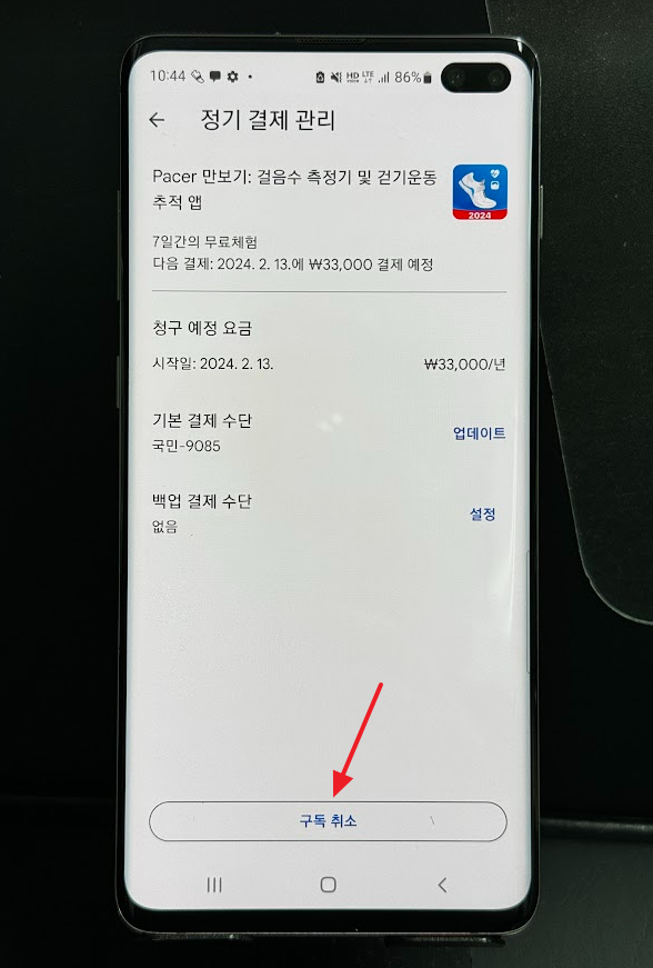 이제 구독이 취소 되었습니다. 반드시 상단에 화살표 친 '취소됨'을 확인하시고 앱을 종료하시기 바랍니다.