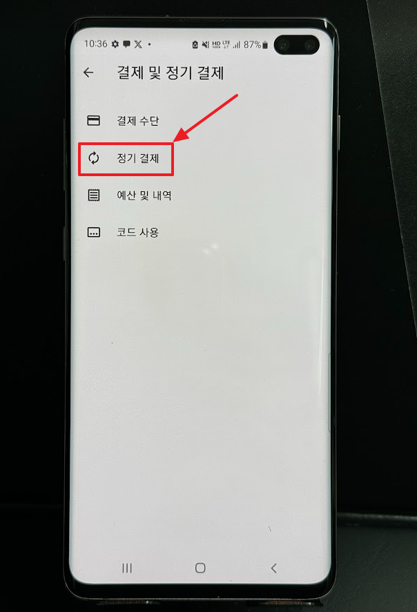 결제 및 정기결제 에서 '정기 결제'로 들어갑니다.