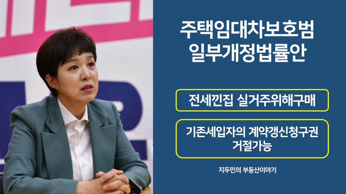 9월18일 국민의힘 김은혜 의원은 매매계약을 체결한 새 집주인이 해당 주택에서 실제로 거주하려는 경우 기존 임차인의 계약갱신 요구를 거절할 수 있도록 하는 '주택임대차보호법'일부 개정안을 발의했습니다.