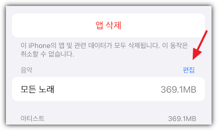 모든노래 옆의 용량표시 위에 있는 '편집'을 누릅니다.