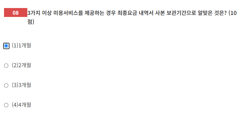 3가지 이상 미용서비스를 제공하는 경우 최종요금 내역서 사본 보관기간으로 알맞은 것은? (10점)