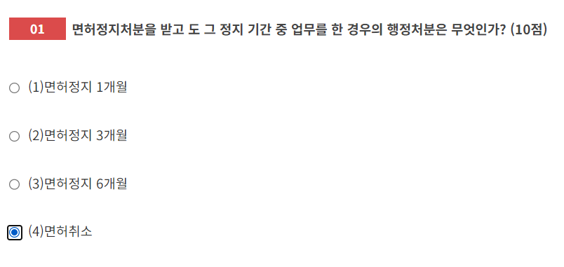 면허정지처분을 받고 도 그 정지 기간 중 업무를 한 경우의 행정처분은 무엇인가? (10점)