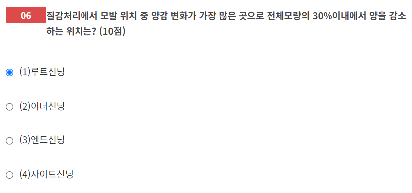 질감처리에서 모발 위치 중 양감 변화가 가장 많은 곳으로 전체모량의 30%이내에서 양을 감소하는 위치는? (10점)