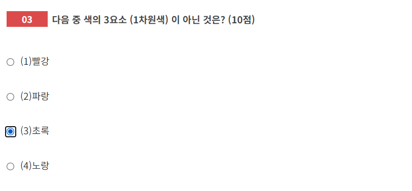 다음 중 색의 3요소 (1차원색) 이 아닌 것은? (10점)
