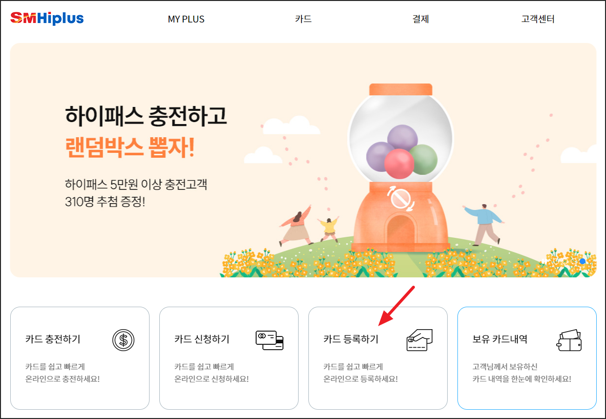하이패스 홈페이지가 아니고 '하이플러스카드 홈페이지'로 들어가야합니다. 접속하면 아래와 같은 화면이 나오는데요.