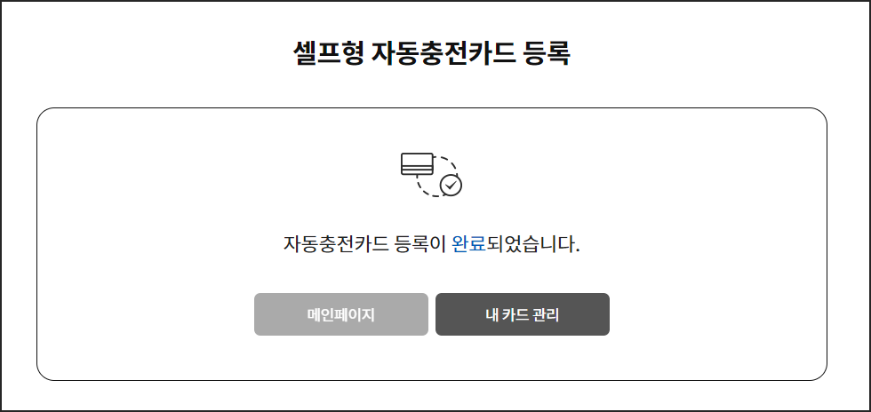 이렇게 해서 자동충전카드 등록이 완료되었습니다.