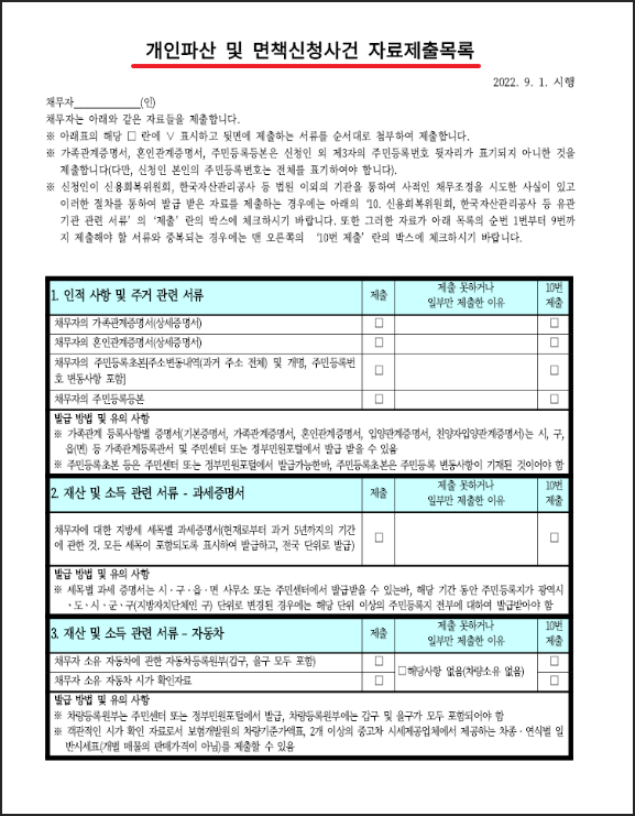 개인파산 및 면책 신청서 작성 가이드
