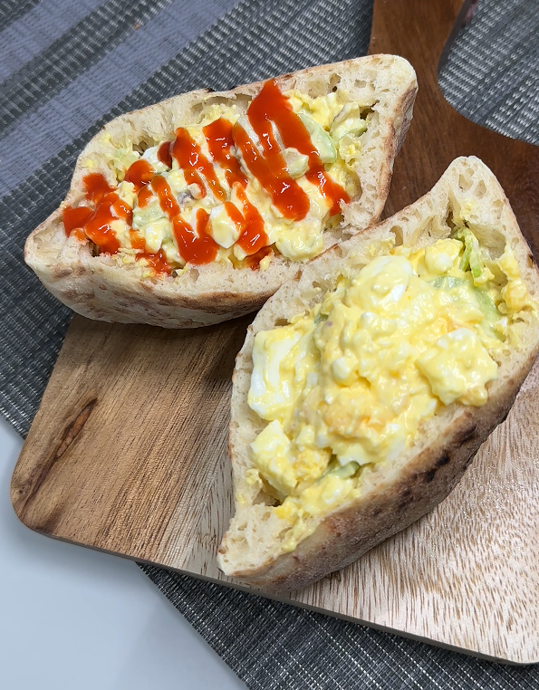 두 번째 샌드위치는 샐러리, 계란, 양파에 마요네즈를 더해 만든 속을 채운 버전이에요. 신선한 샐러리의 아삭함과 고소한 계란의 부드러움, 그리고 양파가 어우러져 깔끔하고 상큼한 맛이 느껴졌습니다. 마요네즈가 전체 재료들을 잘 결합해주어 촉촉하면서도 조화로운 맛이 인상적이었어요.