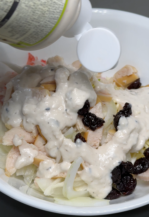 첫 번째 샌드위치는 피타브레드에 건포도, 닭가슴살, 양파, 양배추, 그리고 어니언크림을 넣어 만들었어요.