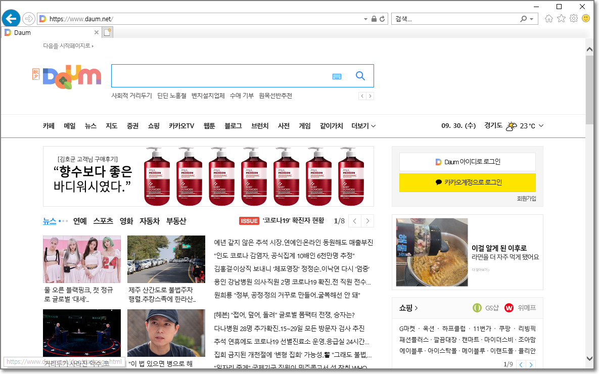 익스플로러32비트로 다음 첫화면이 나왔습니다.