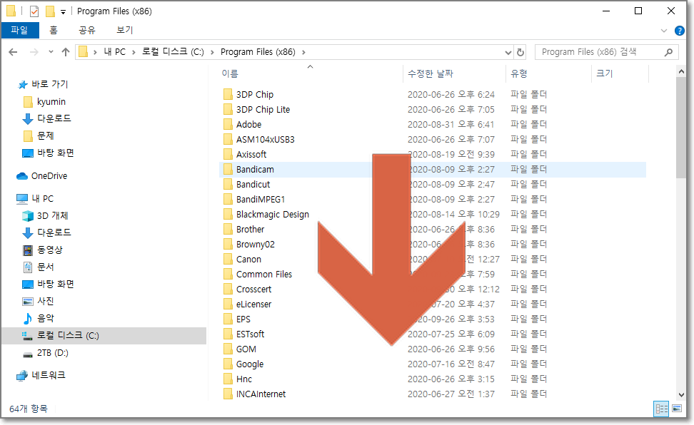 탁색기 창의 오른쪽에서 Program Files (x86)을 찾아서 더블 클릭합니다.