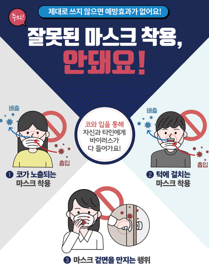 하지만 입만 가리거나, 턱에걸치거나, 심지어 코만 가리는 사람도 있는데, 이 경우에는 무용지물 입니다.