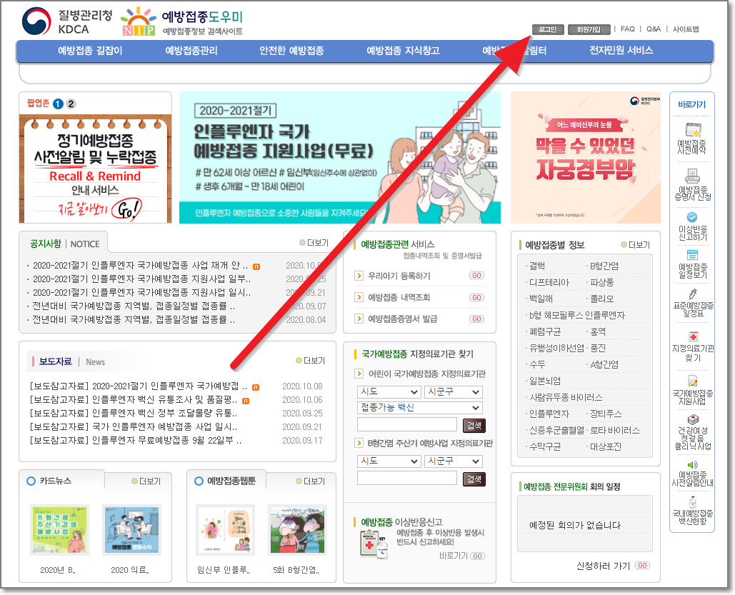 우선 질병관리청이 운영하는 예방접종 도우미로 들어갑니다. 링크를 누르시고 새창으로 열고 계속 보세요.