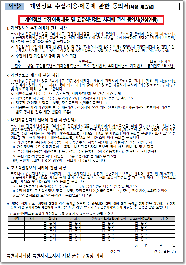 ○ 개인정보제공동의서 - 가구원 전체 동의서 필요 (이글의 맨 윗부분 참고)