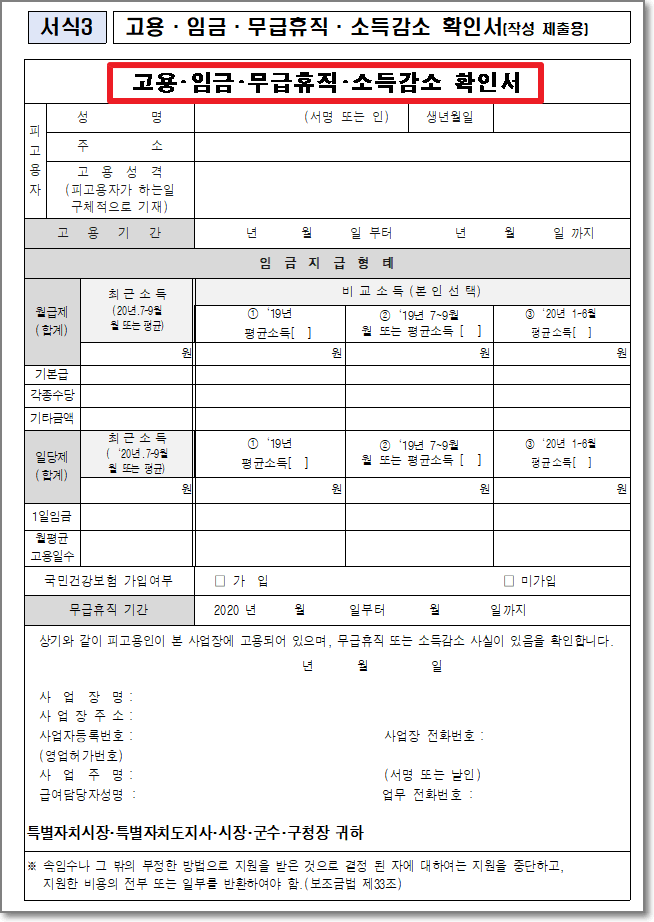| ② [서식3] 고용·임금·무급휴직·소득감소확인서 |