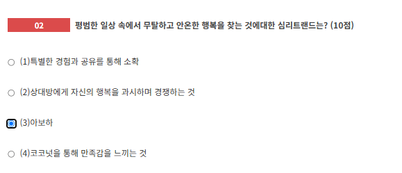 👉평범한 일상 속에서 무탈하고 안온한 행복을 찾는 것에 대한 심리트랜드는? (10점)