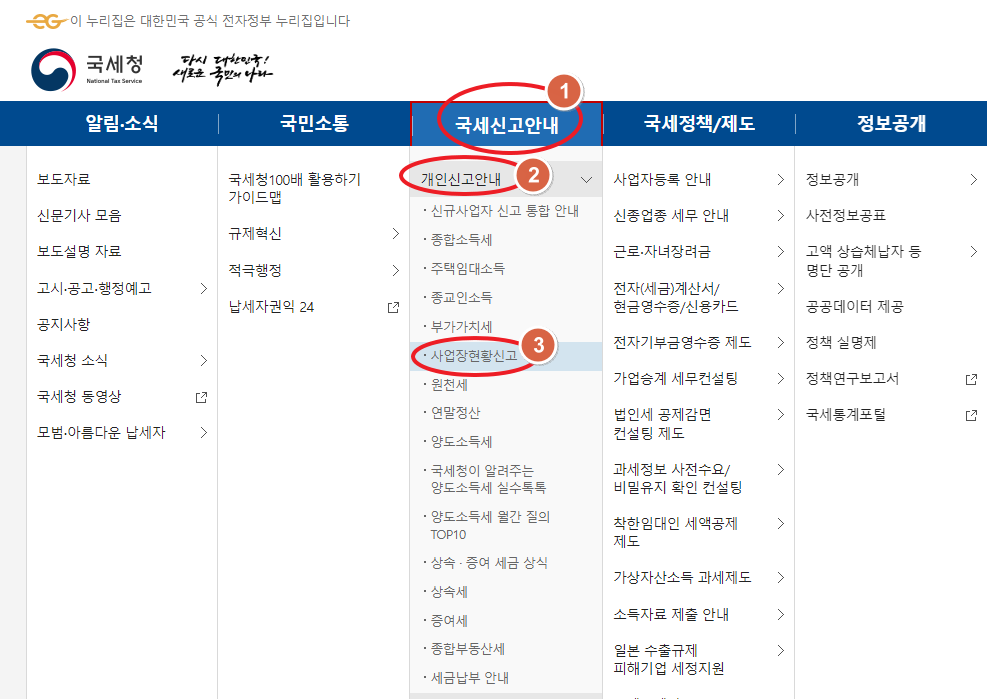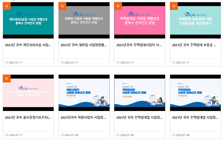 - 국세청 홈택스 > 국세신고안내 > 개인신고안내 > 사업장현황신고 > 동영상자료실