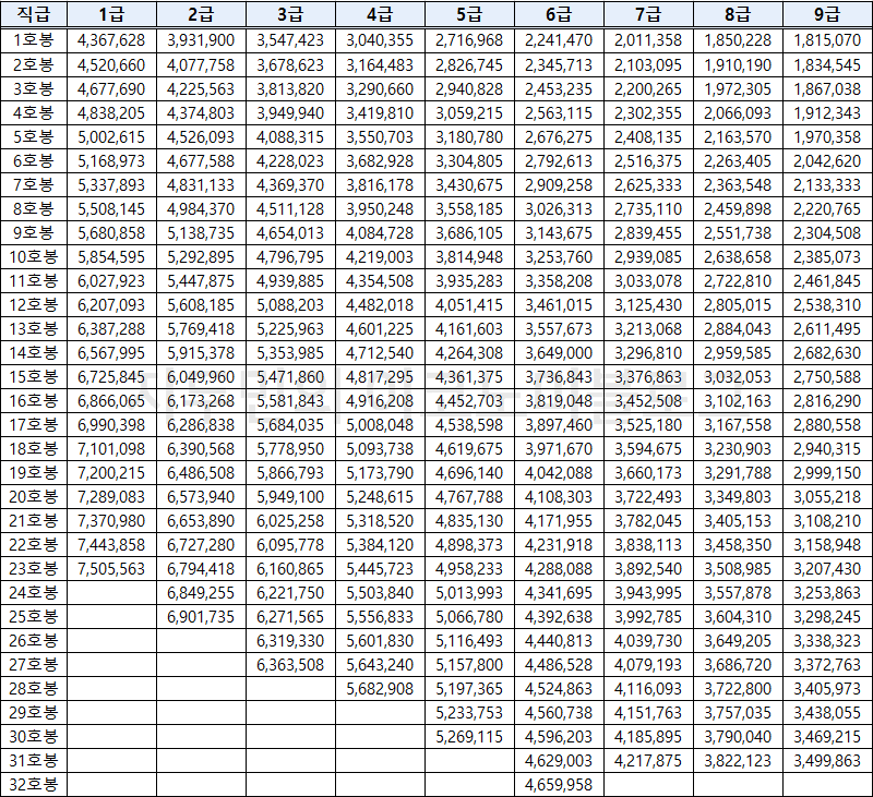2024년 대한민국 공무원의 급여는 2023년의 물가변동률인 3.3%보다는 적지만 다행히 동결되지 않고 2.5% 인상되었습니다. 이 글에서는 2024년도 공무원 급여를 알아보고 최저시급과 비교를 해보겠습니다.
