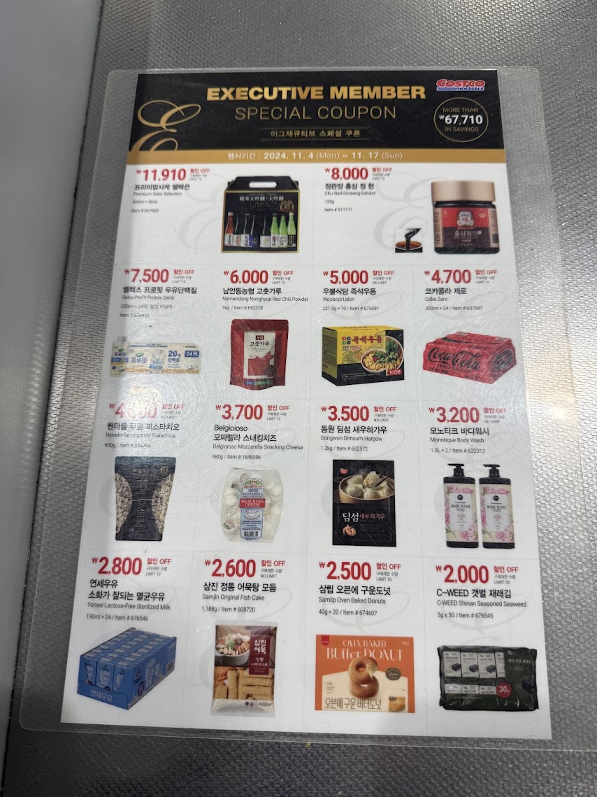 안녕하세요! 코스트코를 애정하는 여러분들을 위한 꿀정보를 들고 왔습니다. 코스트코 이그제큐티브 멤버십 회원님들만을 위한 특별 쿠폰 혜택이 돌아왔어요! 이번 프로모션은 2024년 11월 4일(월)부터 11월 17일(일)까지 진행되며, 다양한 상품이 할인 중입니다. 오늘은 할인 품목과 함께, 이번 행사의 매력을 소개해 드릴게요. 😊