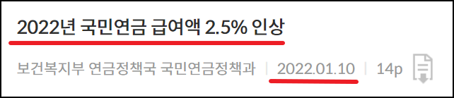 2022년에도 물가상승률이 5.1% 올랐을 때 역시 공적연금액도 5.1% 인상되었습니다. 그래서 나온내용이 아래와 같은 내용이었는데요.