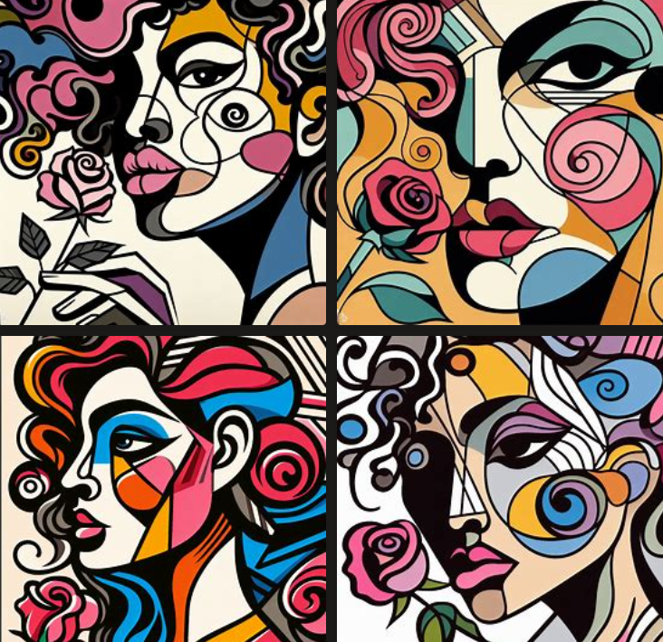 이번에는 '피카소 풍의 남자와 여자가 있는 인물화'라고 입력해보았습니다.