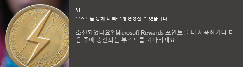 이 포인트는 마이크로소프트의 리워드 포인트를 사용하거나 다음주에 충전되는 부스트를 기다리면 됩니다.