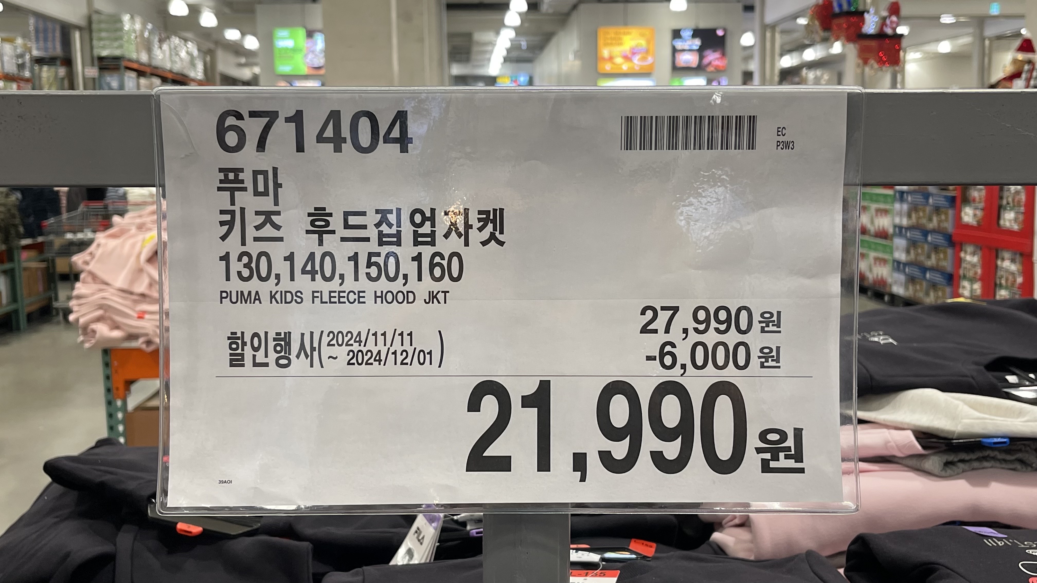 푸마 키즈 후드집업자켓 130,140,150,160 11월11일~12월1일까지 21,990원