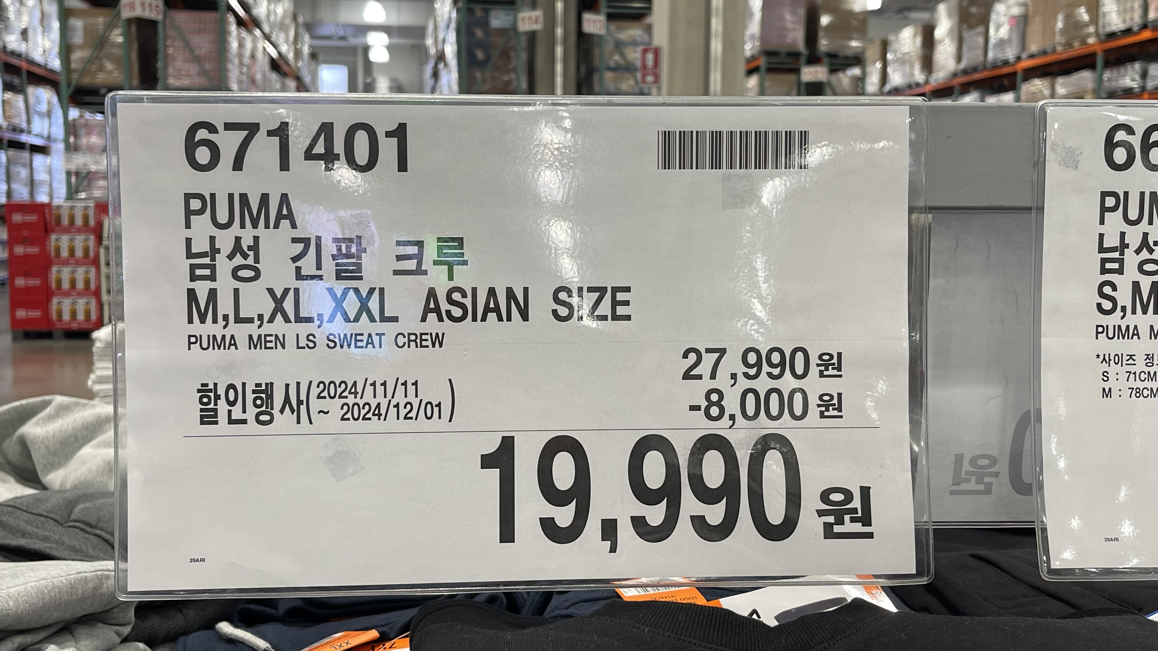 PUMA 남성 긴팔 크루 M,L,XL,XXL 11월11일~12월1일까지 19,990원