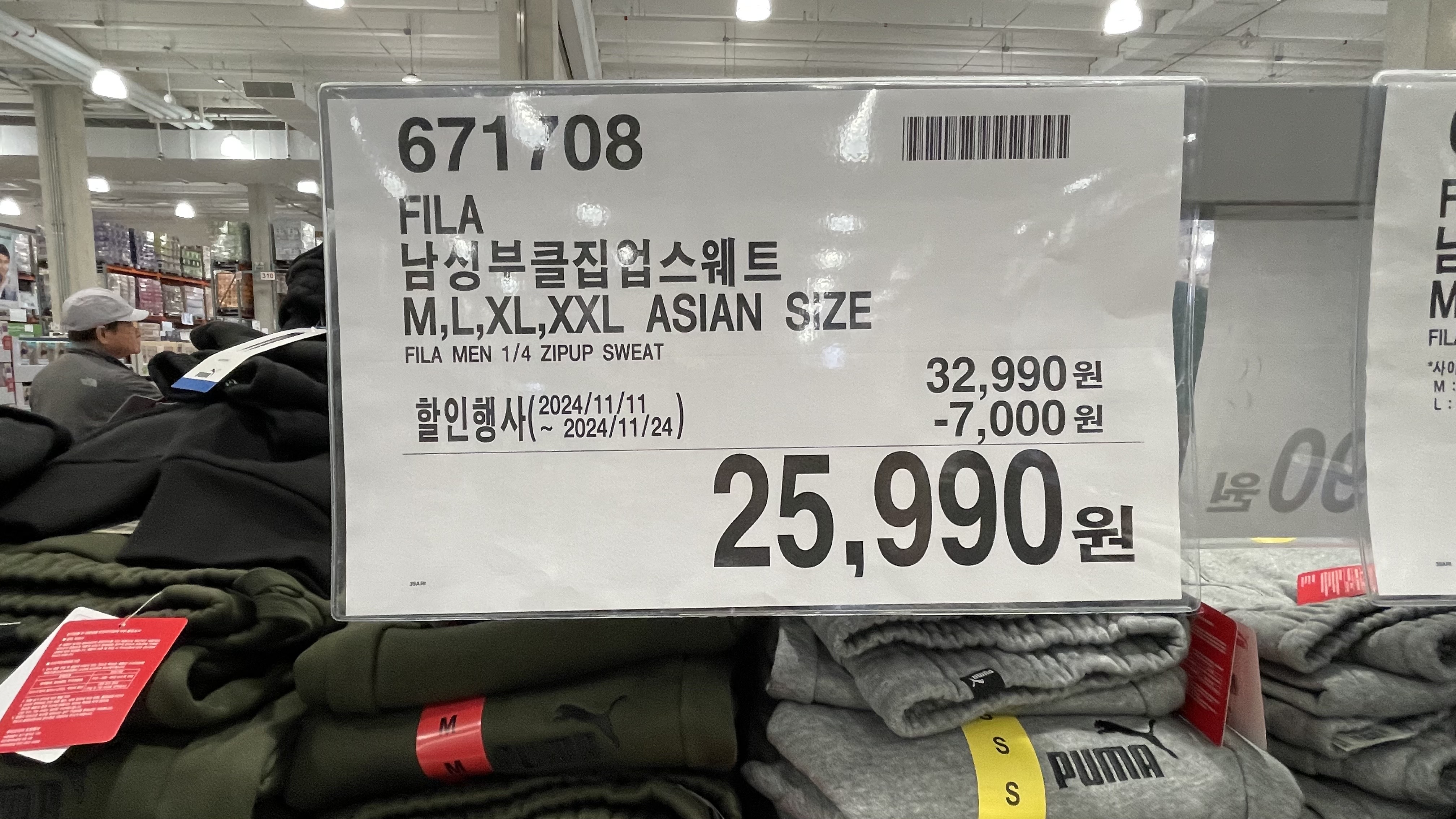 FILA 남성부클집업스웨트 M,L,XL,XXL 11월11일~11월24일까지 25,990원