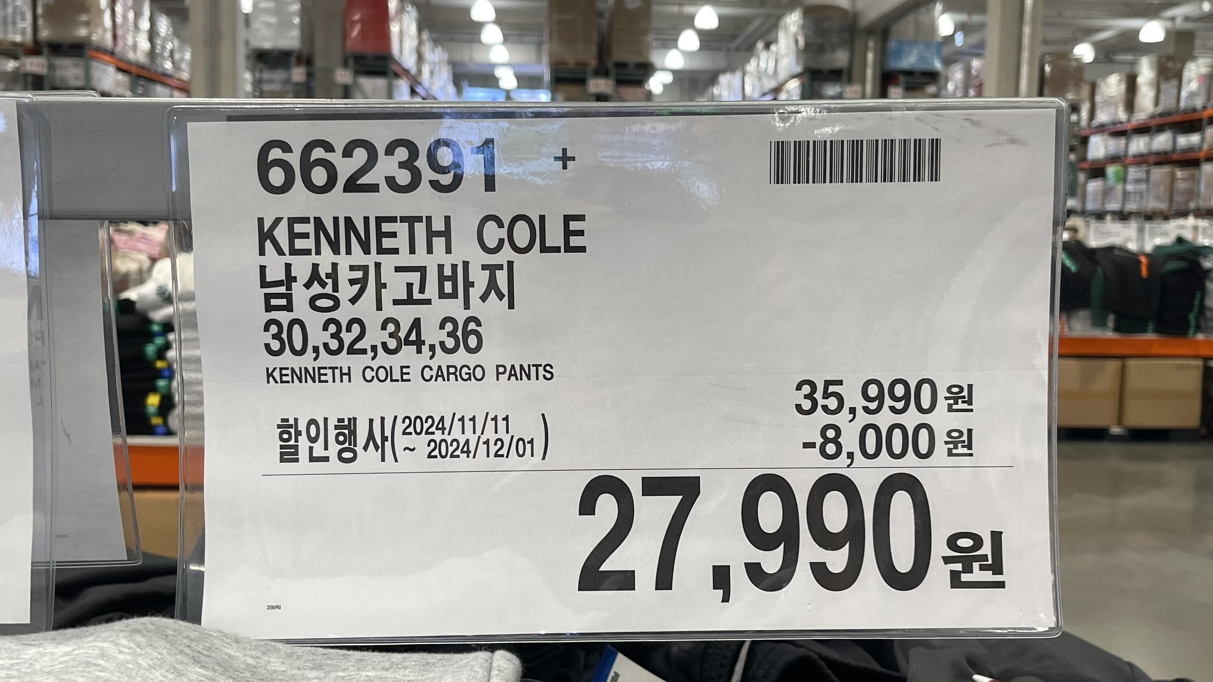 KENNETH COLE 남성카고바지 30,32,34,36 11월11일~12월1일까지 27,990원