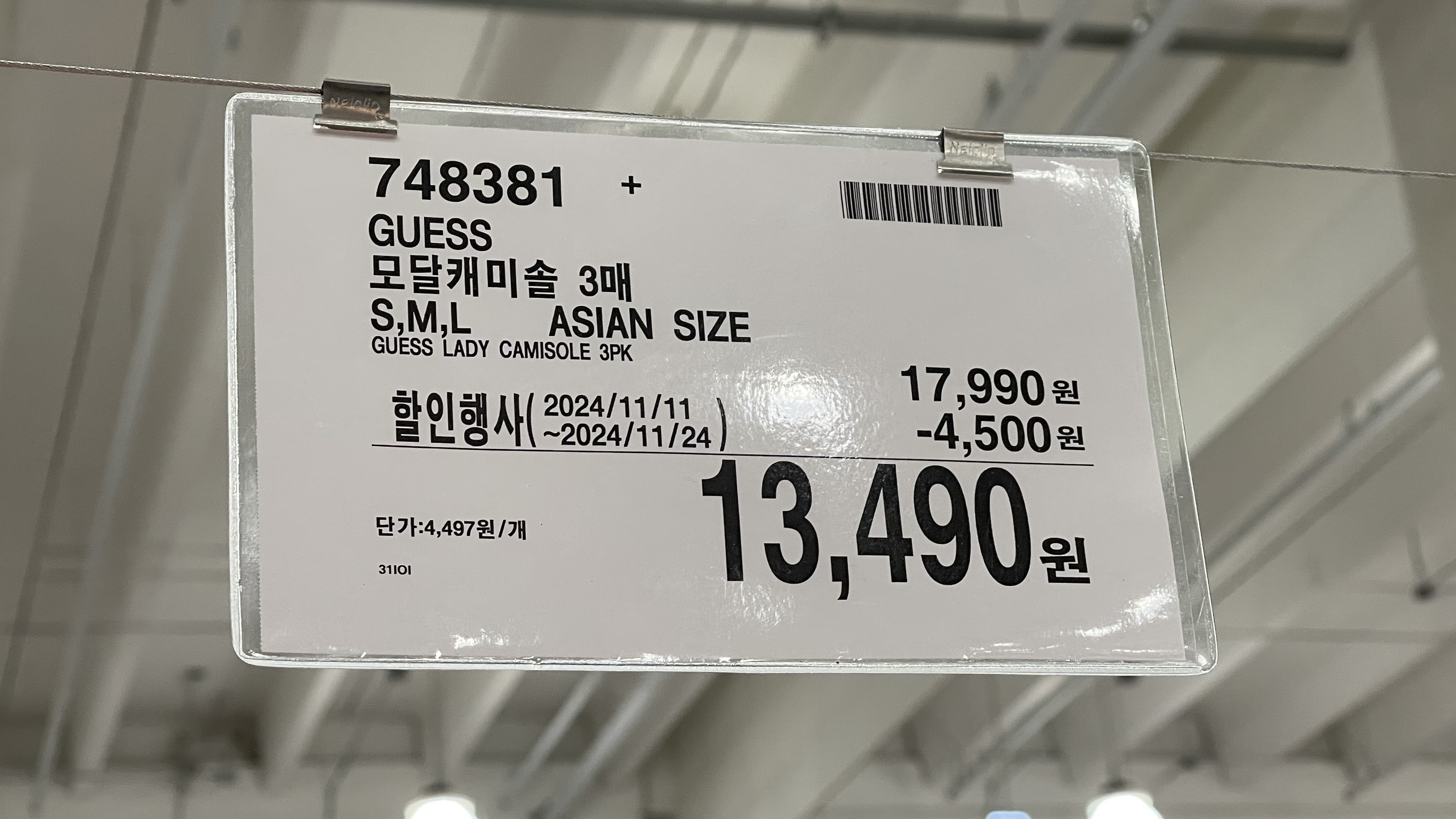 GUESS 모달캐미솔 3매 S,M,L 11월11일~11월24일까지 13,490원