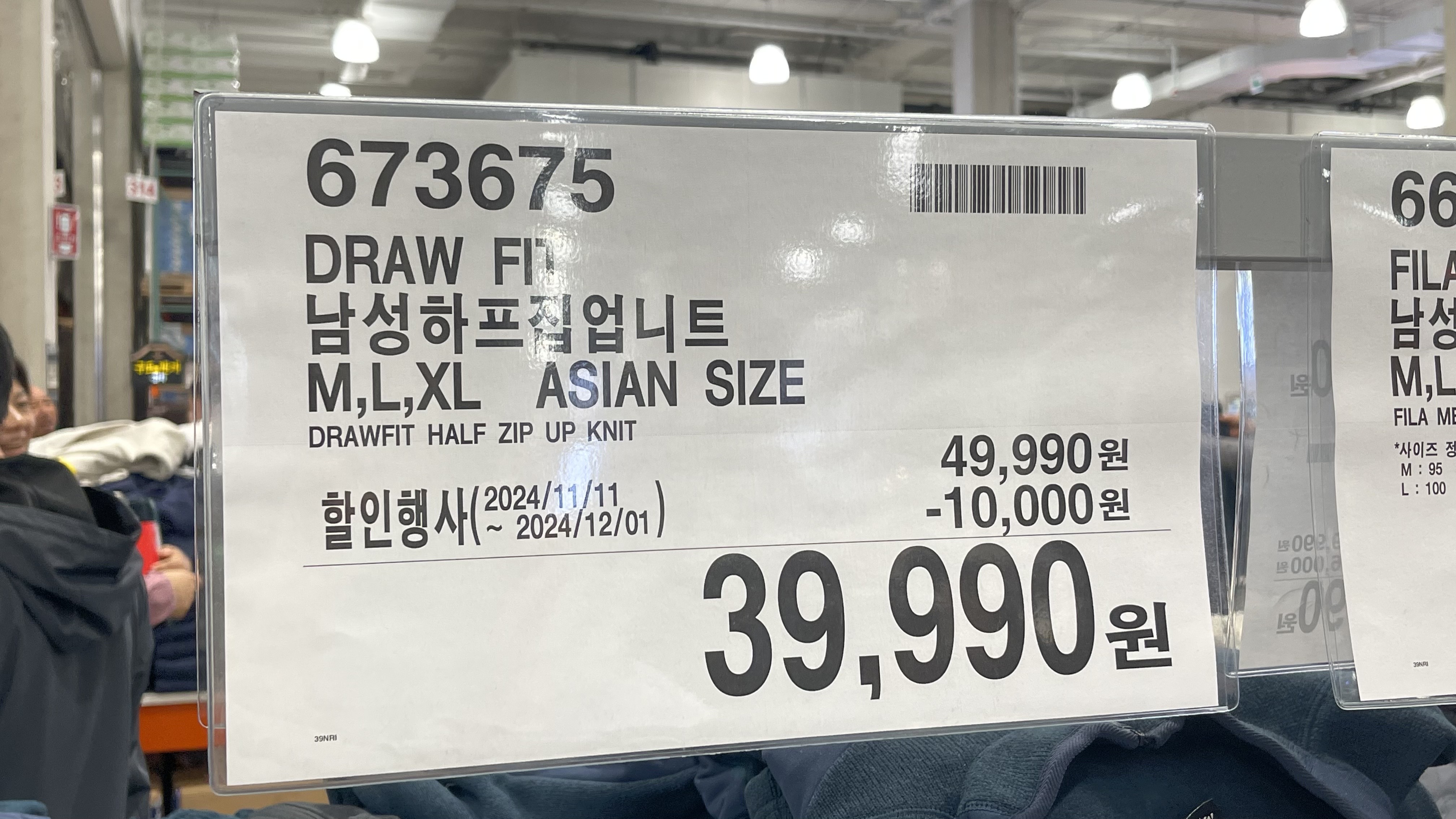 DRAW FIT 남성하프집업니트 M,L,XL 11월11일~12월1일 39,990원