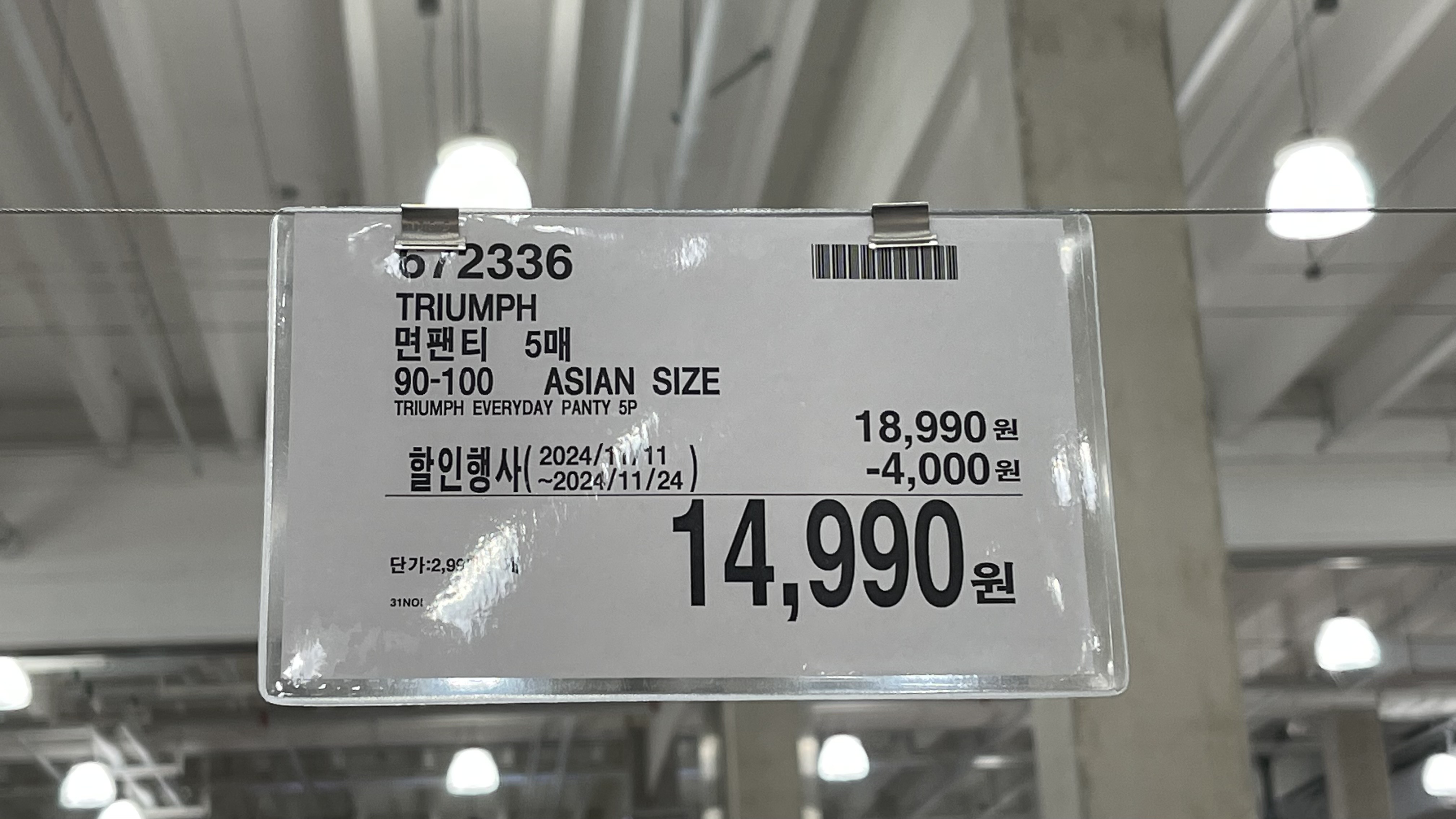 TRIUMPH 면팬티 5매 90~100 11월11일~11월24일까지 14,990원