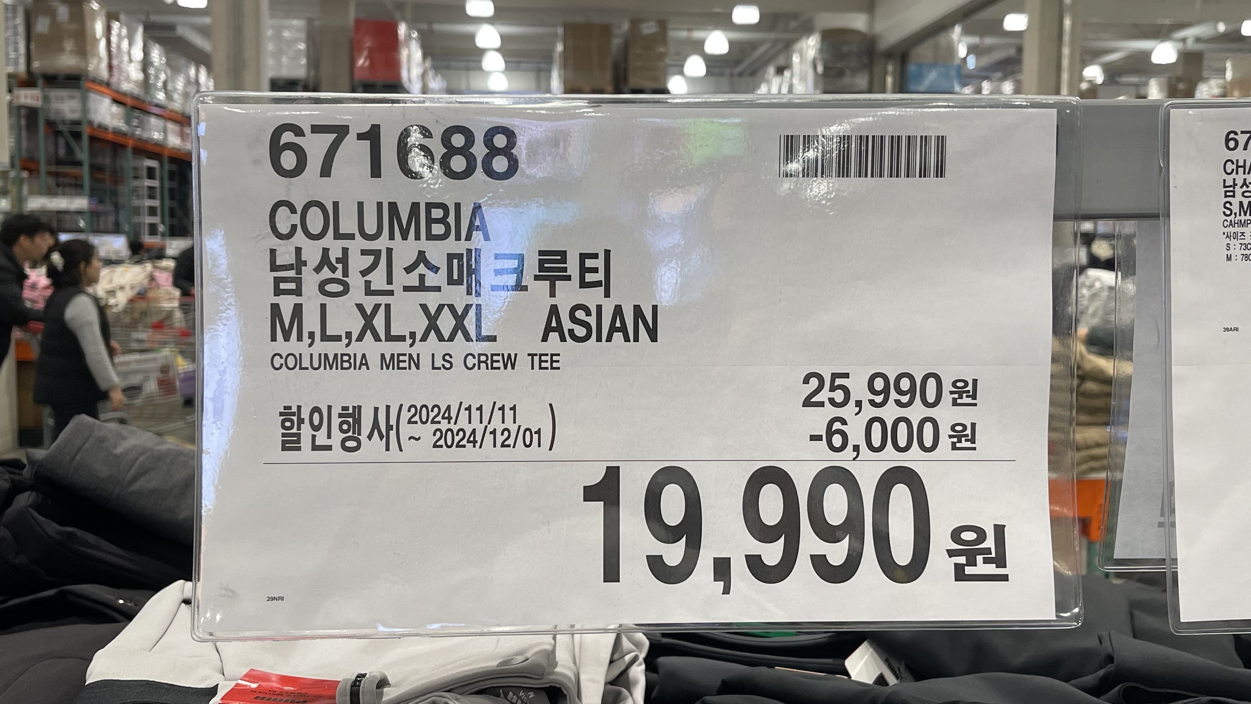 COLUMBIA 남성긴소매크루티 M,L,XL,XXL 11월11일~12월1일까지 19,990원