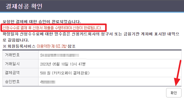 여기까지는 500원을 결제한 것이고 반드시 신청서 제출을 해야합니다.