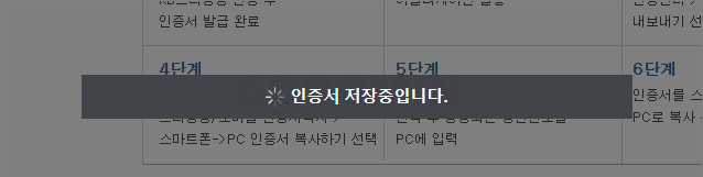 확인을 누르면 '인증서 저장중입니다'라고 나옵니다.
