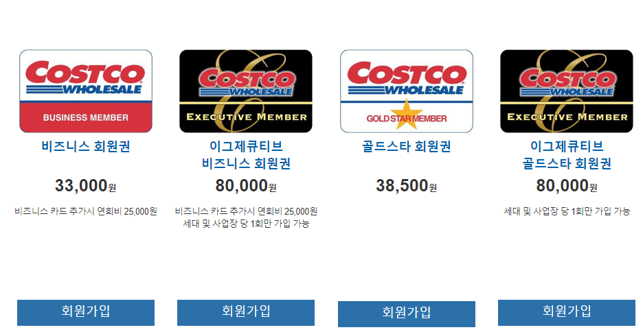 참고로 코스트코의 멤버십은 트레이더스 홀세일 클럽의 '스탠다드'에 해당되는 것이 '골드스타'이며, 프리미엄에 해당하는 것이 '이규제큐티브'입니다.