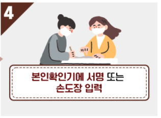 4. 본인확인기에 서명 또는 손도장 입력