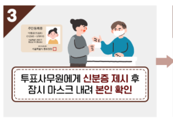 3. 투표사무원에게 신분증 제시 후 잠시 마스크 내리고 본인 확인