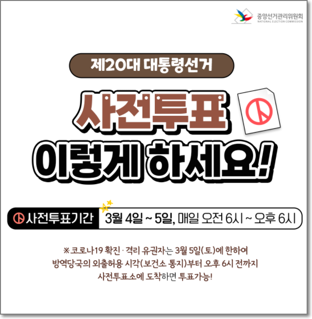 사전투표일 : 2022년 3월4일(금요일), 3월5일(토요일) 이틀간
