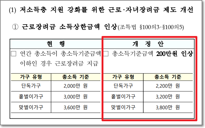 👉 재산합계액이 1억 4천만 원 이상이면 근로장려금 50% 지급